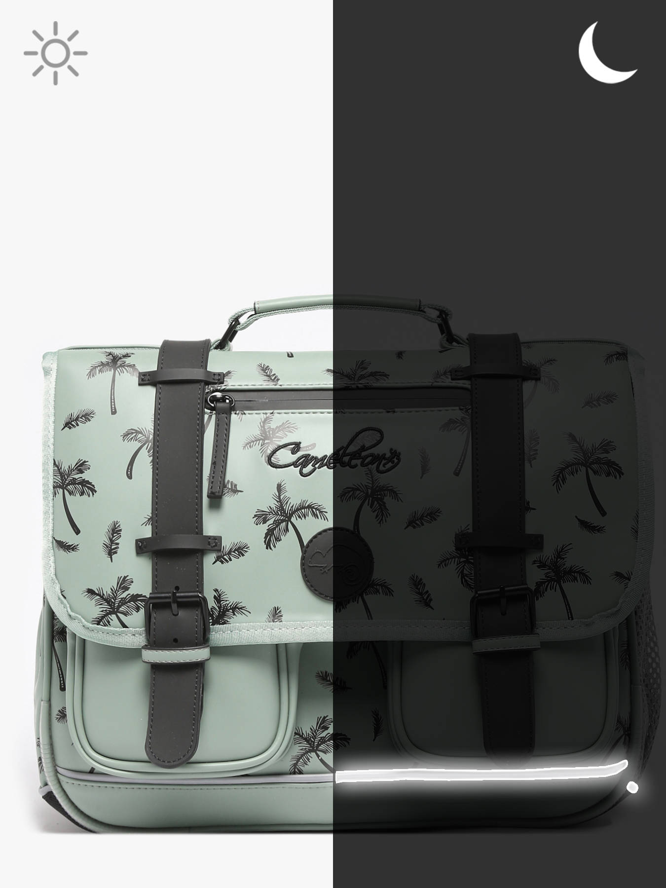 Deze boekentas uit de Vintage North collectie van Caméléon heeft een mooie breedte van 38cm, geschikt voor de 1ste graad van de basisschool. De boekentas beschikt over twee ruime steekvakken en een middenvak met rits, die schriften (24x32 cm) en schoolboeken van A4-formaat of groter kunnen bevatten. Vooraan zijn twee handige ritsvakjes voor kleine spulletjes voorzien, en een waterfles kan in het elastisch zijvakje worden opgeborgen. Deze Vintage North boekentas heeft een verstevigde bodem, en voor extra draagcomfort zijn de schouderbanden gewatteerd. Tenslotte is de boekentas voorzien van reflectoren, zodat uw kind zich veilig in het verkeer kan begeven.