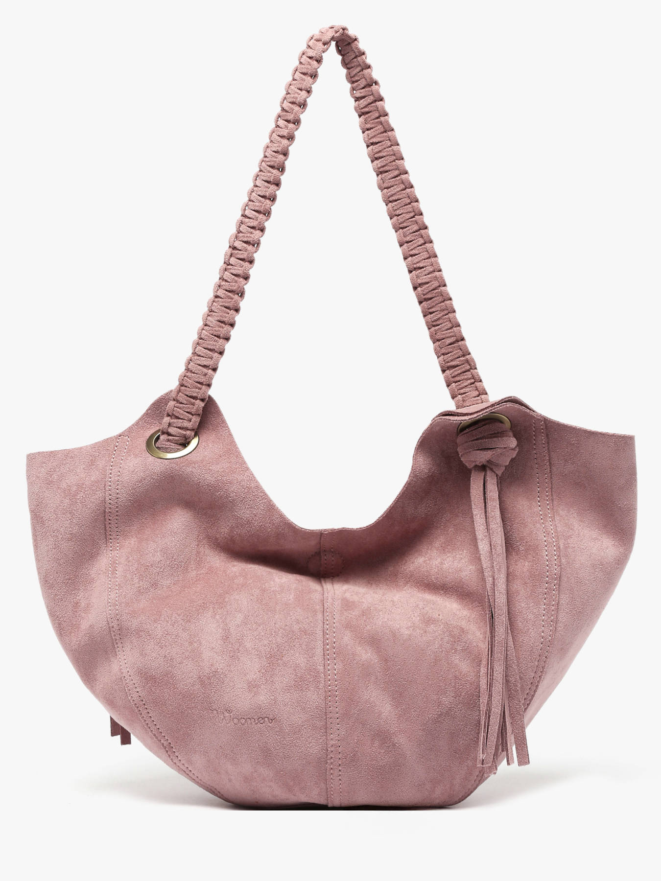 De schoudertas WOOMEN formaat S uit de lijn Maranta combineert vloeiendheid, stijl en praktisch gebruik. Het materiaal van fluweel en de gevlochten schouderriem met kwastjes aan de voorkant en achterkant geven het model lichtheid en originaliteit. Gemaakt van polyester, beschikt hij over een onzichtbare magneetsluiting en een klein ritsvakje binnenin om je essentials te organiseren. Het subtiel geperste logo aan de voorkant voegt een verfijnd vleugje toe. Deze schoudertas wordt een functioneel en elegant accessoire, perfect om al je outfits vloeiend en stijlvol compleet te maken.
